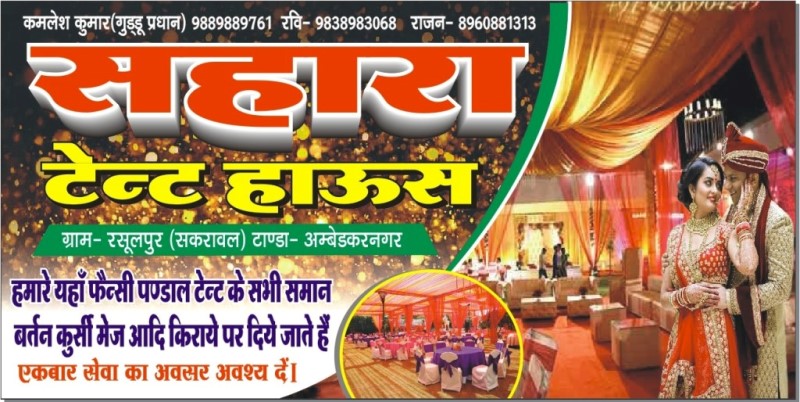 6 Tent Houses Tent House SAHARA TENT HOUSE AND PRADHAN MINRAL WATER Vill rasoolpur near sakrawal tanda \n Ambedkar Nagar, Uttar Pradesh